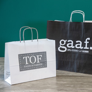 De draagtas die je meegeeft aan je klant mag gezien worden. Kies daarom voor een model dat past bij jouw product en huisstijl. Duurzame draagtassen zijn vaak gemaakt van materialen zoals non woven, katoen, vilt of jute. Ook heb ik papieren tassen in allerlei formaten en kleuren op voorraad staan die snel te leveren zijn. Of wat denk je van een luxe papieren tas met koordjes met een bedrukte binnenzijde. Of voorzien van een mooie bedrukking met hotfoil.